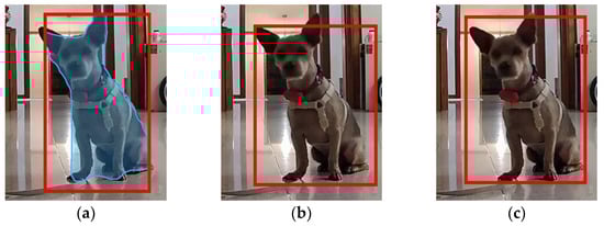 Since various objects such as the owner or dog products appeared in the collected video data, dog detection was performed to check only the movement of dogs. Currently, various methods have been proposed for object detection in computer vision; however, detecting a distant dog inside a house requires a method with good performance at small object detection. Among the representative small object detection methods, Liu compared the performance of methods such as YOLOv3, FasterRCNN, and SSD [27]. In addition, Nguyen compared the performance of RetinaNet, Fast RCNN, YOLOv3, and FasterRCNN [28]. In terms of processing speed, it was confirmed that the performances of Faster RCNN and YOLOv3 were excellent. Accordingly, in this paper, we performed dog detection by adding FasterRCNN, YOLOv3, and YOLOv4, which has improved performance over YOLOv3 [29].