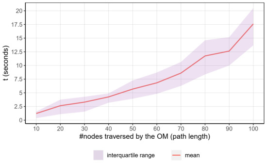 Moreover, the results show the applicability of the General Purpose Data and Query Privacy Preserving Protocol [13] to the indoor location floor system. The data in Figure 8 and Table 3 show that in the extreme scenario of OM path length , the OM Round-Trip-Time is generally less than 30 s. However, in practical implementations, the system will rather rely on multiple smaller OMs executed in parallel than one large OM. Therefore, the framework response time is reduced to approximately 10 s + two block periods if parallel OM execution is applied at .