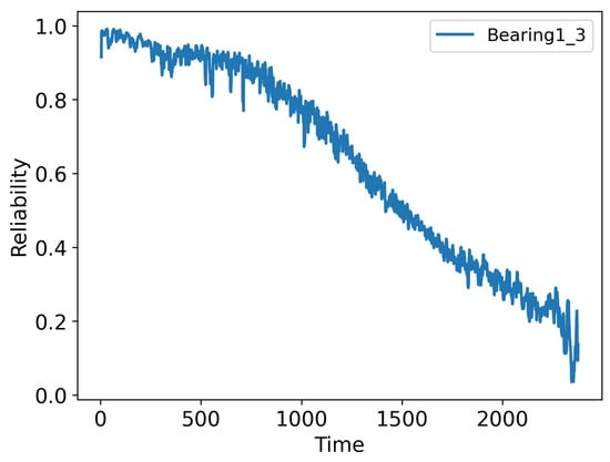 As explained in the condition monitoring section, it is really difficult to identify the performance of the equipment based on so many features shown in Figure 7. Therefore, we calculated the health index which is considered as reliable, combined with the extracted features. One example is shown in Figure 8, which is the reliability of the whole degradation process. The expert could easily make comprehensive decisions based on such an index.