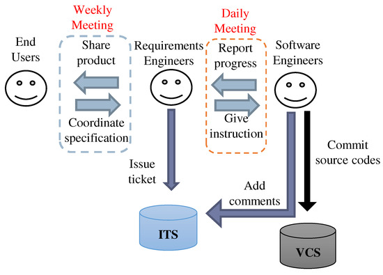 - Saito, S.; Iimura, Y.; Massey, A.K.; Antón, A.I. How Much Undocumented Knowledge is there in Agile Software Development?: Case Study on Industrial Project Using Issue Tracking System and Version Control System. In Proceedings of the 25th IEEE International Requirements Engineering Conference, RE 2017, Lisbon, Portugal, 4–8 September 2017; Moreira, A., Araújo, J., Hayes, J., Paech, B., Eds.; IEEE Computer Society: Washington, DC, USA, 2017; pp. 194–203. [Google Scholar]