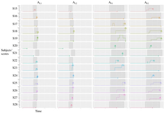 Changes in scores over time for each subject in the experimental group ().