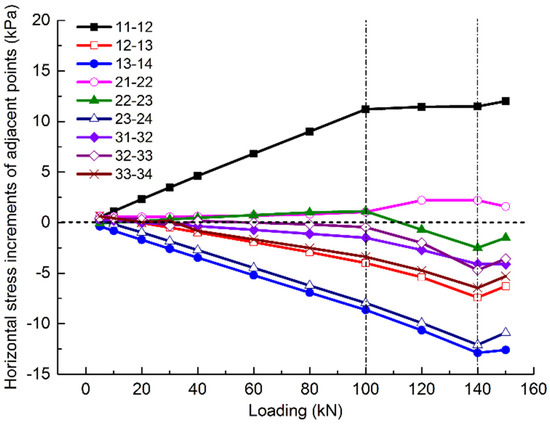 | Monitoring Point | Distance from Loading Center/m | Slope of Stress Curve (Mean Value) | Vertical Stress Slope (0–140 kN) | ||
