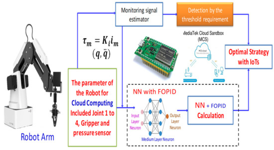 Figure 10 shows the control architecture of the manipulator. In addition, the controller gains need to be properly optimized to achieve better performance. In this paper, the FOPID with a modified neural network algorithm is proposed as a novel adaptive adjustment algorithm to optimize the gain of the controller.