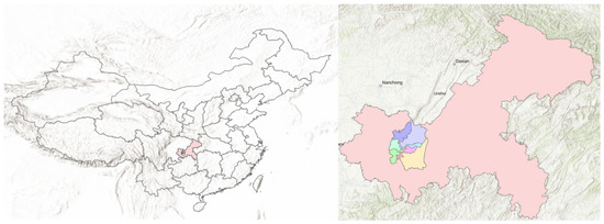 Chongqing is in the transition zone between the Qinghai–Tibet Plateau and the middle and lower reaches of the Yangtze River Plain. This city has mountainous terrain with large topographic undulations and an average elevation of 400 m. The peculiarities of the topography of Chongqing often require winding routes to be followed between two locations. This results in a mismatch between straight-line distance and time cost and difficulty in reflecting actual food accessibility. Chongqing contains 26 municipal districts, 8 counties, and 4 autonomous counties. With consideration of the distribution of urban areas, the present study analyzed nine main urban areas in Chongqing, namely, the districts of Yuzhong, Jiangbei, Nanan, Jiulongpo, Dadukou, Shapingba, Yubei, Banan, and Beibei, shown as Figure 1.