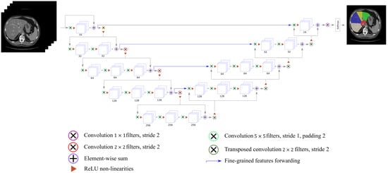 - Milletari, F.; Navab, N.; Ahmadi, S.A.A. V-Net: Fully Convolutional Neural Networks for Volumetric Medical Image Segmentation. In Proceedings of the 2016 Fourth International Conference on 3D Vision (3DV), Stanford, CA, USA, 25–28 October 2016; pp. 565–571. [Google Scholar] [CrossRef] [Green Version]