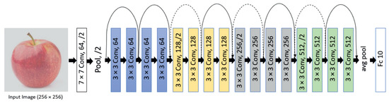 In this contribution, two architectures are used for classification: (1) ResNet18 [20] and (2) MobileNet V2 [21]. In the ResNet18 structure, a Convolutional Neural Network with 18 layers deep is built based on a deep residual learning framework shown in Figure 1.