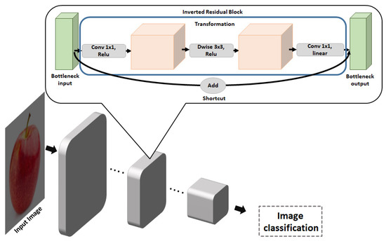 - Sandler, M.; Howard, A.; Zhu, M.; Zhmoginov, A.; Chen, L.C. MobileNet v2: Inverted residuals and linear bottlenecks. In Proceedings of the IEEE Conference on Computer Vision and Pattern Recognition, Salt Lake City, UT, USA, 18–23 June 2018; pp. 4510–4520. [Google Scholar]