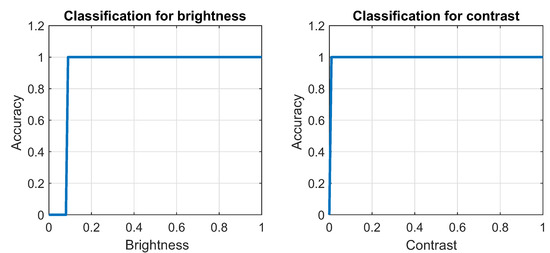Classification accuracy considering MobileNet V2 classifier for changing of brightness and contrast.