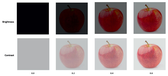 The classifiers are used to classify/identify apples from an image. Two image parameters are considered as the varying parameters: contrast and brightness (Figure 7).