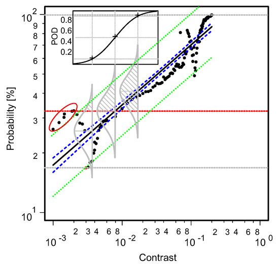Probability of Detection considering different image contrasts.