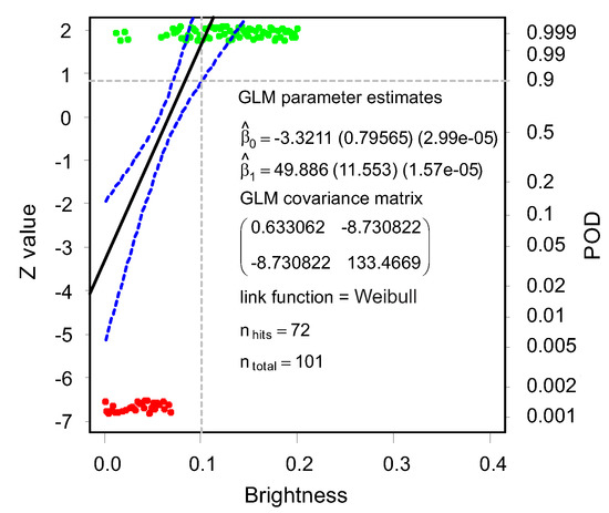 - Annis, C. Statistical Best-Practices for Building Probability of Detection (POD) Models; Statistical Engineering, R Package mh1823; 2021; Available online: http://StatisticalEngineering.com/mh1823 (accessed on 16 November 2021).