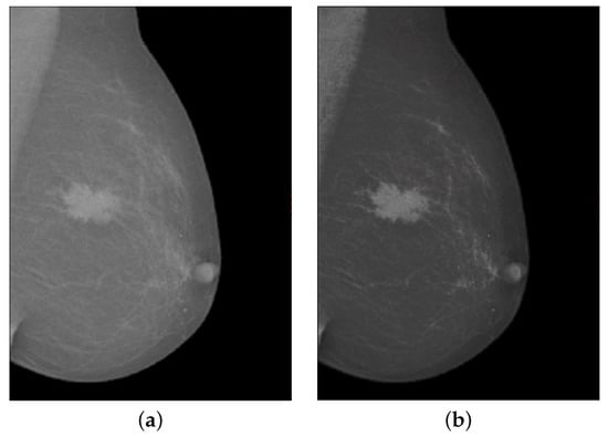 Many researchers focus on biomedical imaging to assist specialist radiologists. Early detection of tumors has a significant role in the diagnosis and analysis of breast cancer. Detection of breast cancer malignancies in early stages is important. Various biomedical imaging methods have been utilized to determine breast cancer, i.e., magnetic resonance imaging (MRI), ultrasound, and mammography []. Owing to the huge number of images, radiologists face many problems identifying suspicious areas or cancer. Therefore, to reduce the load, an efficient automated method is required to help radiologists significantly. A computer-aided diagnostic (CAD) model is used to assist radiologists detect malignant breast cancer tumors [,].