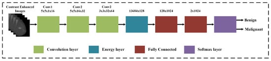 The TTCNN architecture is presented for breast cancer classification. The proposed deep CNN considers the three important features of the image: Firstly, the size of some description patterns is much smaller than the source image, but if their size is equal to the convolution filter mask size, the convolution filter can find the pattern. Secondly, certain shapes or patterns can be used in different parts of the mammogram image. These models can also be defined by convolving the entire source mammogram image. Thirdly, downsampled pixels are very important for the max-pooling layer and do not change the shape of the source mammogram image. The proposed TTCNN framework for the breast cancer classification is illustrated in Figure 4.