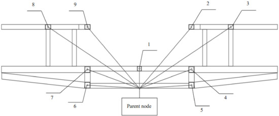 Based on the layout direction of the structural components of the interface, it is inferred that the rear interface of the front suspension frame module is a socket interface. The interface node network of the module is constructed, as shown in Figure 11, and the relevant information is extracted, as shown in Table 2.