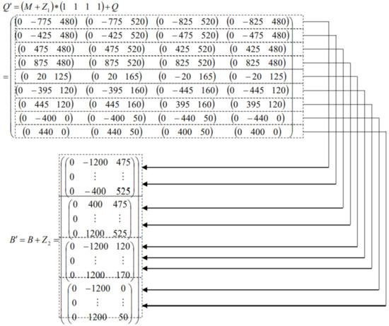 As mentioned in step (5), the reconfiguration process matrix Z of the module was constructed based on the results of the above-mentioned process. The characterization matrix Q′ of the connection section of the plug interface and the acceptable range matrix B′ of the socket interface are solved by the equation below: