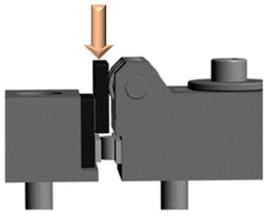 The SLO in compression test (Figure 1a) is adapted from the standard ASTM D905-08 and also described in [21]. The fixture was designed to minimize the substrates’ bending and rotation, thus obtaining a parallel relative displacement between them, which generated pure shear (Figure 3). The much higher stiffness of adherend materials (E moduli: Si4N4 320 GPa, SiC 400 GPa, steel 206 GPa) with respect to the adhesive (E modulus 4 GPa) contributed to approach the condition of deformable adhesive between stiff adherends, with a consequent, nearly uniform, stress along the bondline. In addition, as the adhesive was ductile, the unavoidable stress peaks at the interface ends could also be compensated for by plasticity when the joint yielded.