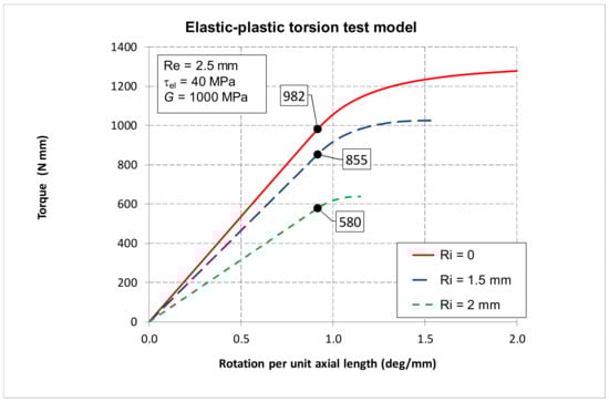 Application of the model clearly showed that in the case of a very thin joined annulus (Ri→Re) the plastic contribution was minimal and the shear strength τel could be obtained similarly to under elastic behaviour. Thus, the result was also size independent and was not influenced by the diameter of the specimen.
