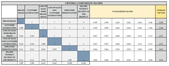 After researching several methods, a multi-criteria analysis was found [,,,,,,,] that uses the numerical scale of Saaty, to expose perceptions, thoughts, judgments, as well as to measure, with the same criteria, tangible and intangible qualities. Due to this fact, we decided to apply two multi-criteria analysis processes to measure and control all quality costs (intangible and tangible costs) in manufacturing plants.