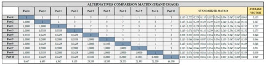 The matrix of paired comparisons for the criteria and alternatives is based on the four axioms below []: