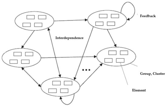 The ANP process is represented by elements or nodes gathered in components, groups, or clusters as is shown in Figure 7. An element in a group or cluster may influence elements within the same group or in other groups in the network. The name of the relationship between elements of the same group is feedback and the relationship between elements of different clusters is called interdependence.