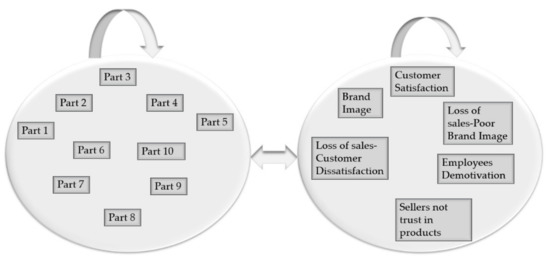 In the matrix shown in Figure 9, the parts located in the top right area were “the quick wins” and it meant that with low reengineering cost, the manufacturing plant will have a high impact in terms of quality improvements and consequently in customer satisfaction.