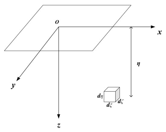 From Mindlin’s displacement solution of homogeneous elastic half-space [30,32], it can be seen that, when a concentrated load along the x-axis acts at the point (ξ, ζ, η) in the semi-infinite space, the vertical displacement at (x, y, z) can be expressed by