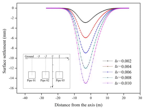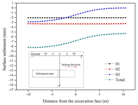 3.2. Settlement Induced by Friction of the Pipe Jacking Machine