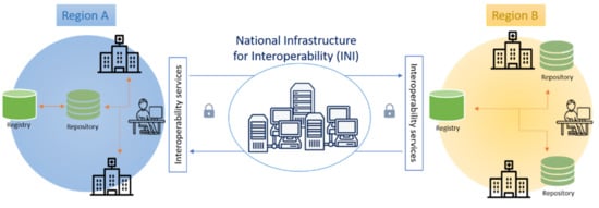 The need to create a national federated EHR infrastructure in Italy derives from the autonomy in healthcare matters that Italian regions have, which has allowed them, over time, to create their own EHR systems, which need to be maintained (considering the effort for their implementation and their consolidated use at a regional level) and to make them interoperable. The FSE architecture is based on a federated model, which focuses on the cooperation of local nodes. Specifically, it is based on a system of systems approach, where each regional system has to expose a set of specific services, which provide all the functionalities needed to manage, search, and consult data and documents regarding the patient and produced by different healthcare facilities. This national architectural model aims at enabling interoperability among different regional systems and allowing the exchange of clinical data and documents among them, thanks to the already mentioned INI (Figure 1). In this scenario, the first need is permitting users to locate clinical information that can be distributed on all national territory, i.e., patients’ clinical documents and data can be archived in different information systems of different regions. This makes the retrieval task quite problematic. The simplest solution would have been to query all the regional registries, but it would lead to an all-time high in search, which could be fatal for the whole system. Therefore, the chosen approach for FSE lies in the identification, in each regional domain, of a node in charge of managing all the meta-information about a patient. Specifically, the region in which the patient resides (RDA) is liable to manage meta-information associated with his/her clinical documents, even if they are produced in another regional domain. Thus, in order to consult a document located outside a regional domain, it is first necessary to identify such a region and then to interrogate its regional system for locating the specific healthcare facility in which the document is stored.