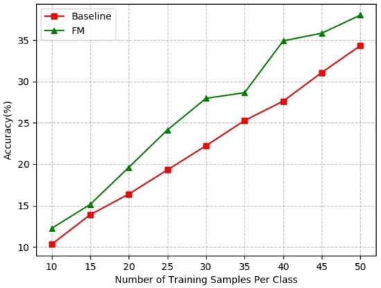 B. Small sample size problem: In some real industrial scenarios, the size of the dataset may be small, which would bring difficulty to the network training. Besides, Reference [42] mentioned that reducing the size of the training dataset can measure the generalization performance of the models. Therefore, we evaluated the effectiveness of Feature Mining on the small sample size problem along with varying the size of the training data. Due to the limitation of the computing resources, we chose ResNet-56 as the baseline model.