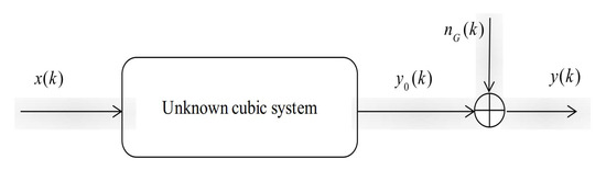 Cubic systems can approximate many nonlinear effects (e.g., due to the power amplifier or quantization effects), and we find that more complex nonlinear characteristics can be replaced by equivalent lower-order nonlinear characteristics in general, and cubic characteristics in particular [21]. Indeed, Figure 1 describes the block diagram of the nonlinear system identification problem which is represented by a Volterra series with only a small number of kernels. The system, which we propose to identify in this work, is a cubic nonlinearity that has the form