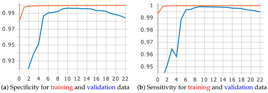 - Keras—Sensitivity at Specificity|TensorFlow Core v2.8.0. Available online: https://www.tensorflow.org/api_docs/python/tf/keras/metrics/SensitivityAtSpecificity (accessed on 14 March 2022).