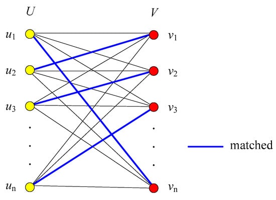 The time complexity of the greedy minimum weight matching algorithm, designated as Greedy_MWM, is as follows. As noted in [], the time complexity of the Hungarian method for solving the minimum weighted bipartite matching problem of a weighted complete bipartite graph is O(m3). Therefore, the total time complexity is O(nm2).