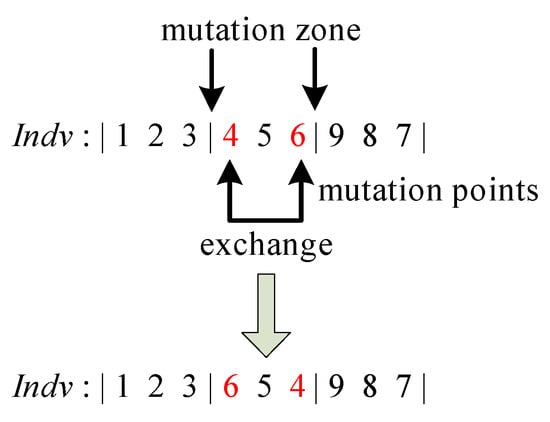 - The crossover operator is defined as taking and as the first and second parents as the crossover operator, respectively. When the crossover operator is applied, each of the different sensor spots in and , from left to right, is taken to be exchanged if a uniform random number r ∈ (0, 1) is generated and if r < . For example, with = |1 2 3|5 4 6|9 7 8| and = |1 2 3|5 4 6|9 8 7|, we obtain = |1 2 3|5 4 6|9 8 7| if both generated uniform random numbers are less than . The exchanged result must be a legal solution; therefore, some adjustments must be made. In our implementation, if = |1 2 3|5 4 6|9 8 8| after the exchange of and on the second position in zone 3, we adjust the third position in zone 3 from 8 to 7 to ensure its legality as a solution.