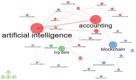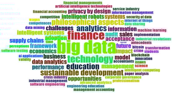 Figure 2 highlights the keywords that frequently appear in articles that match the database query phrase. All the elements that we intuited to be related to the cloud accounting field are found in the previous image: big data, machine learning, internet of things, artificial intelligence, etc.