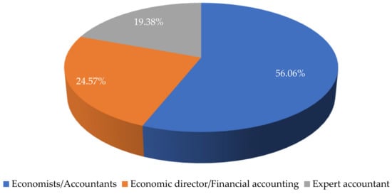 In terms of positions/functions, the distribution of the sample was 56.06% economists/accountants (162 people), 24.56% economic/financial accounting directors (71 people), and 19.38% accounting experts (56 people). The graphical representation is shown below in Figure 4.