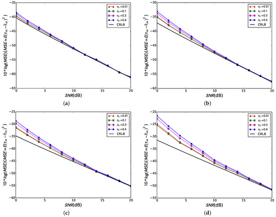 As far as the MSE is concerned, we find that it consists of two contributions, the covariance and the bias . Referring to Equation (26) for further analysis, is diverse because varies with the time delay, as will be demonstrated in the next section.