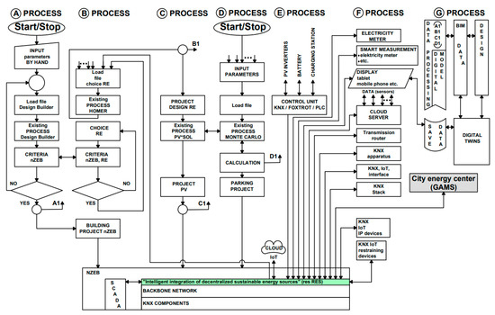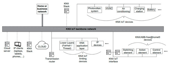 Figure 4 shows “Building energy model and KNX/FOXTROT control”. Finally, the EPB was solved using the BEM, wherein the community energy was solved by IoT and IoE applications according to