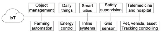 http://www.cisco.com/c/en/us/solutions/internet-of-things/overview.html, accessed on 9 March 2022) is a recent communication paradigm foreseeing a near future, wherein everyday objects will be equipped with microcontrollers, transceivers for digital communication, and appropriate protocol stacks that will allow them to communicate with each other and with users as well as to become an integral part of the Internet [
