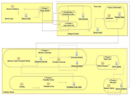 There are, at least, three main modules (see Figure 1) in a home energy management system. These are: the programming unit, monitor unit, and prediction and control unit [42]. In the programming module, preference data is entered, which are sent to the control unit. The control unit performs communication between the devices by sending and receiving the signals, and it communicates with the prediction module by sending data that allows a profile of household appliance use to be generated. The logical control unit sends the consumption of each appliance to the programming module. For the development of a demand system, three factors are defined which influence the architecture design: implementation objectives, variables, and the factors derived from the scenario where the system will be located. This scenario’s definition is our concern.