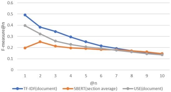 The experiment employed nine experimental patterns: three algorithms combined with three measurement methods (Table 1). Because the BERT input is limited to 512 tokens, it cannot be used for the pattern shown in Figure 1 (document). Hence, the experiment only considered eight patterns.
