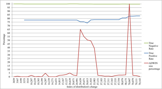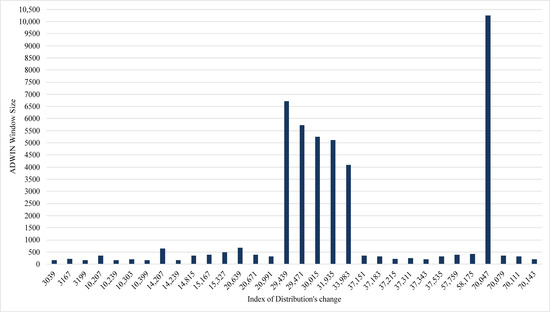 Concept drift means that the data being collected may change from time to time, each time based on a certain minimum persistence. There are two important issues related to change: the cause of the change and the speed of the change [24]. ADWIN (Adaptive Sliding Window) is an estimation technique designed to detect changes in a data stream based on a sliding window with an adaptive size. In this technique, as long as the average value in the window does not change, the length of the window will not be updated [23,24].