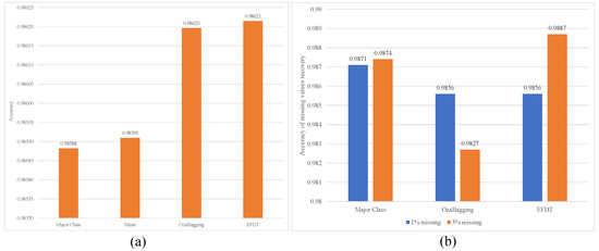The imputation is performed by using an extreme fast decision tree classifier, which was proposed by [53]. It is an efficient modified version of VFDT in which the data will be split when there is a good splitting; then, if a better split is detected, the old one is replaced. The result will be tested for concept drift; if there is a drift in the distribution of the data, the new training operation starts. The ensemble classifier is built using an Adaptive Random forest.
