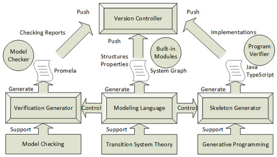 - Kordon, F.; Hugues, J.; Renault, X. From model driven engineering to verification driven engineering. In IFIP International Workshop on Software Technolgies for Embedded and Ubiquitous Systems; Springer: Berlin/Heidelberg, Germany, 2008; pp. 381–393. [Google Scholar]