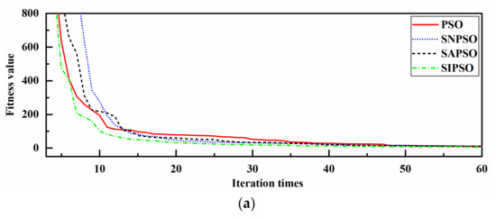 Ordinary parameters of the SIPSO algorithm are set as follows: the number of particle swarms is set as 30 and the maximum number of generations is set as 200. In Equation (5), = 0.9 and = 0.4. To choose the optimal value, parameter a is set as 1, 1.5, 2, and 2.5, respectively. Each case is calculated 50 times and the average value is taken for comparison as shown in Table 2.