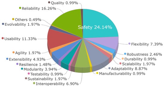 - The information refers to system artifacts of complex systems. We focused on understanding the life properties from a system engineering perspective, which the MBSE tool-chains aim at. The life properties were selected based on Olivier’s definitions [16], including: (1) quality; (2) reliability; (3) safety; (4) flexibility; (5) robustness; (6) durability; (7) scalability; (8) adaptability; (9) usability; (10) interoperability; (11) sustainability; (12) testability; (13) modularity; (14) resilience; (15) extensibility; (16) agility; (17) manufacturability; (18) repairability; and (19) evolvability.
