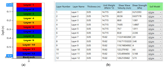 DEEPSOIL software: (a) Modeling in DEEPSOIL; (b) parameters of each layer.