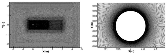 Figure 2 shows the grid distribution and the computational domain. The computational domain is a rectangle area with a length of 60D and a width of 40D, and the center of the cylinder is at the coordinate origin. The cylinder diameter is 0.12 m. The upstream inlet is 20D ahead of the coordinate origin, and the downstream outlet is 40D after the coordinate origin. The distances between either of the upside and downside and the coordinate origin are 20D. Unstructured grid is adopted to discretize the computational domain into four layers. The grids in the regions with large gradients of flow parameters are locally refined, i.e., the region near cylinder surface and wake region. The geometric model and meshing are performed by pre-processing software ICEM.