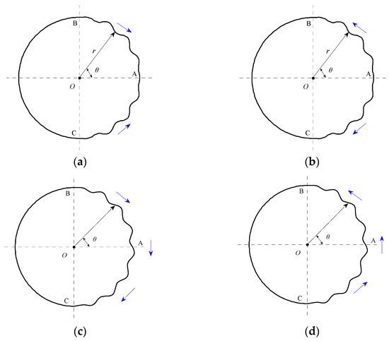 Four types of propagation direction of TWW. (a) Downstream. (b) Upstream. (c) Corotating-Clockwise. (d) Corotating-Counterclockwise.