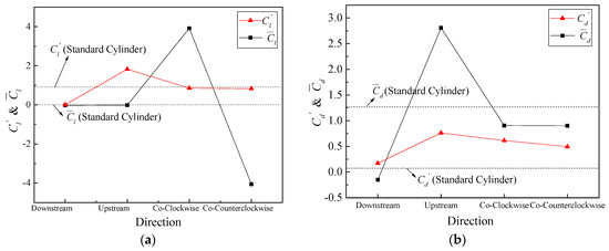 Characteristic values of lift and drag coefficient for different propagation directions. (a) . (b) .