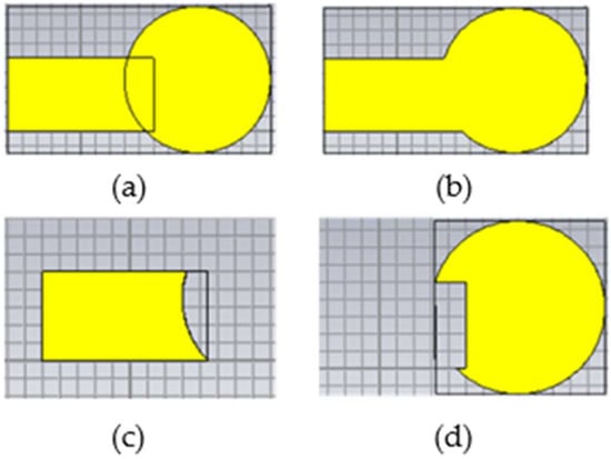 The Microwave CST simulation program is one of the most accurate EM simulation programs, and uses various techniques to simulate the finite integration technique (FIT) [36], finite element method (FEM) [37], transmission line matrix (TLM) [38], multilevel fast multipole method (MLFMM) [39], and particle-in-cell (PIC) [40], as well as multiphysics solvers. The Microwave CST simulation program and Matlab were used to prepare the dataset. Metamaterial production and communication with the Microwave CST simulation program were made using the script written in Matlab. The dimensions of the FR4 material were fixed and its shape was determined as the cube; its dimensions were 5 cm (height), 5 cm (width), 1.6 cm (thickness). The copper shapes produced were cubes or cylinders and the size of the shape was determined according to the center point. The boundaries of the produced coppers were determined randomly, depending on the center point, not exceeding the FR4 limits. The generated coppers’ width and height were variables between 0 and 5 cm depending on the origin of shape, the thickness of copper was constant and 0.035 cm, and generated coppers could not exceed FR4 limits. After all the shapes were created, the intersection regions of the copper materials were detected. Three operations were used for the intersection regions: the addition that unites two materials; the first type of subtraction that subtracts the second material from the first material; the second type of subtraction that subtracts the first material from the second material. All operations for the intersection region are shown in Figure 1.